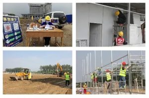 高度重視,周密部署。8月2日,天恩集團第一時間召開會議傳達潛江市新冠疫情防控指揮部關于疫情防控的指示精神。參照去年疫情期間我公司承建的應急醫院項目,建設潛江市市級隔離點項目。10天時間完成750米進出道路建設,500米隔離圍擋,6000平米場地硬化,1800平米臨時生活區以及相關的配套設備設施等。雖然天恩集團有類似的工作經驗,但時間緊、任務重,更需要緊扣目標、精心謀劃、統籌安排。掛圖作戰促施工、倒排工期搶進度,按時保質完成疫情防控隔離點建設任務。